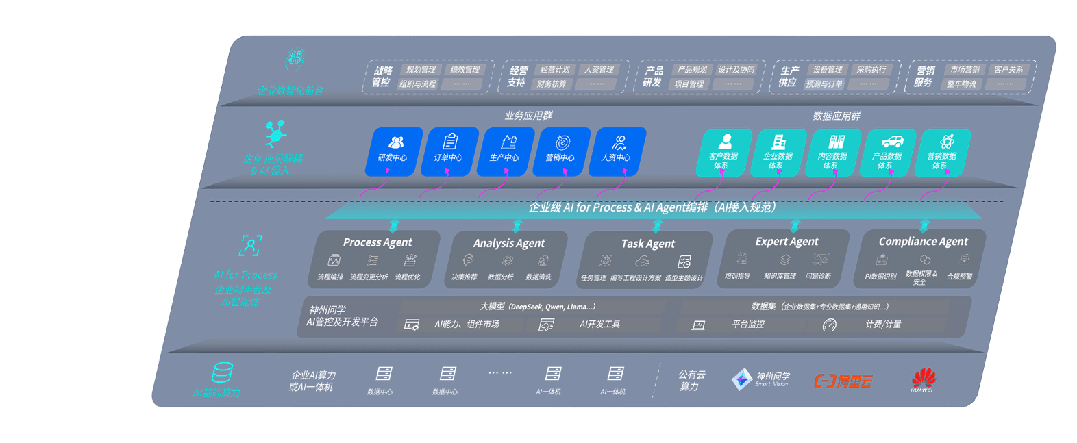 UED问学智车解决方案是一套基于AI技术的汽车行业智能化系统,,,覆盖从底层算力到顶层AI应用的全栈方案。。。方案由算力层、、模型层和应用层组成:算力层,,方案支持多种一体机配置,,,,具备云端灵活部署、、多云适配以及动态优化计算资源的能力;模型层,,,,UED问学平台版提供了企业级AI应用一站式构建与管理平台,,支持基于后训练强化技术的汽车企业专属模型的训练、、、评测和运营;应用层,,,,UED问学DeepSeek版提供包括超级员工、、、智能招采、、、、智能营销、、、、智能客服、、AI for BI等一系列解决方案,,,可助力汽车行业实现数字化转型,,,,让管理更智能、、、、响应更敏捷。。